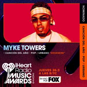 El artista puertorriqueño Myke Towers, una de las figuras más influyentes de la música urbana a nivel global, celebra su nominación a los iHeartRadio Music Awards 2026 en la categoría Latin Pop/Urban Song of the Year por su hit “DEGENERE”, en colaboración con el reconocido productor y compositor benny blanco.