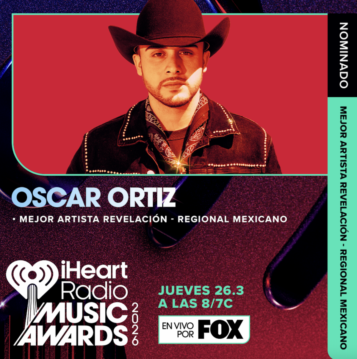 Los iHeartRadio Music Awards celebran a los artistas más relevantes del momento, tomando en cuenta su desempeño en radio, plataformas digitales y la respuesta de los fans, lo que convierte esta nominación en un reflejo directo del respaldo y la proyección que Oscar Ortiz ha logrado en la escena musical.